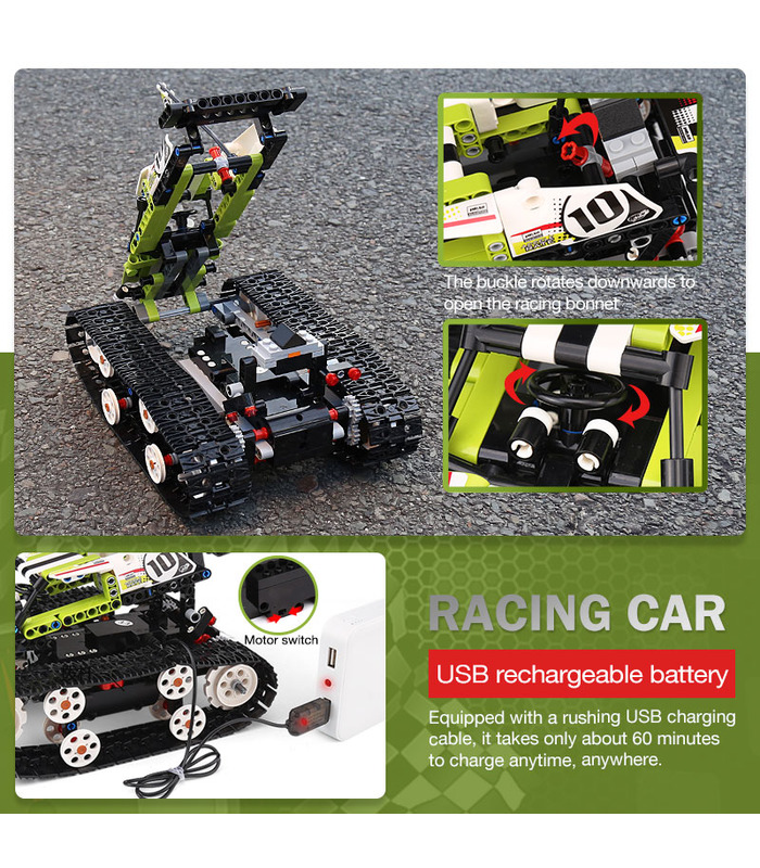 The Mould King Crawler Car is a small construction vehicle with crawler climbing function. After the assembly is completed, the vehicle can be operated via the remote control or mobile phone APP.